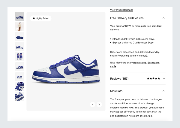 A delivery details section on product pages reassures customers and helps remove obstacles that may be preventing conversions.
